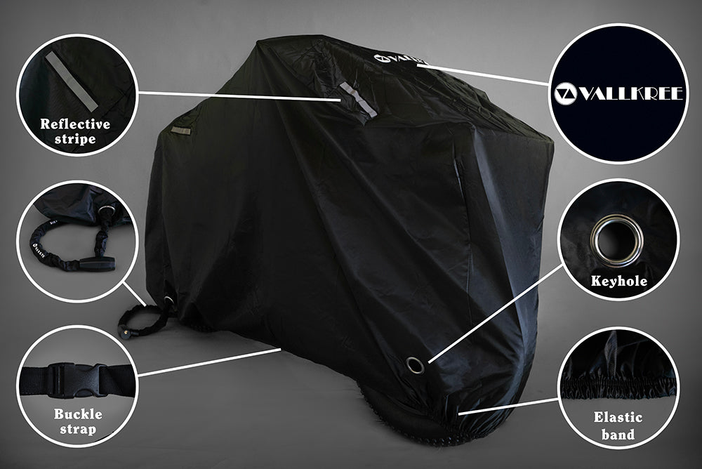 - Metal grommet locking points enable you to secure your bike and cover with a Vallkree lock through the front & back wheel.